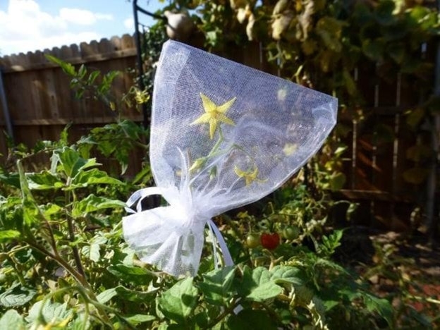 - Bloemen in zakken doen: Bedek de bloemen met netzakken (om zaden op kleine schaal te bewaren).
