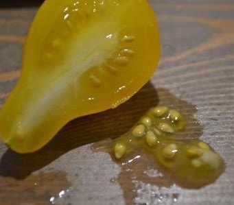 Zaden (tomaten, komkommers) nat maken: Schep de zaden eruit en laat ze 1-3 dagen in water weken (dit verwijdert de gellaag), spoel ze af en laat ze drogen.